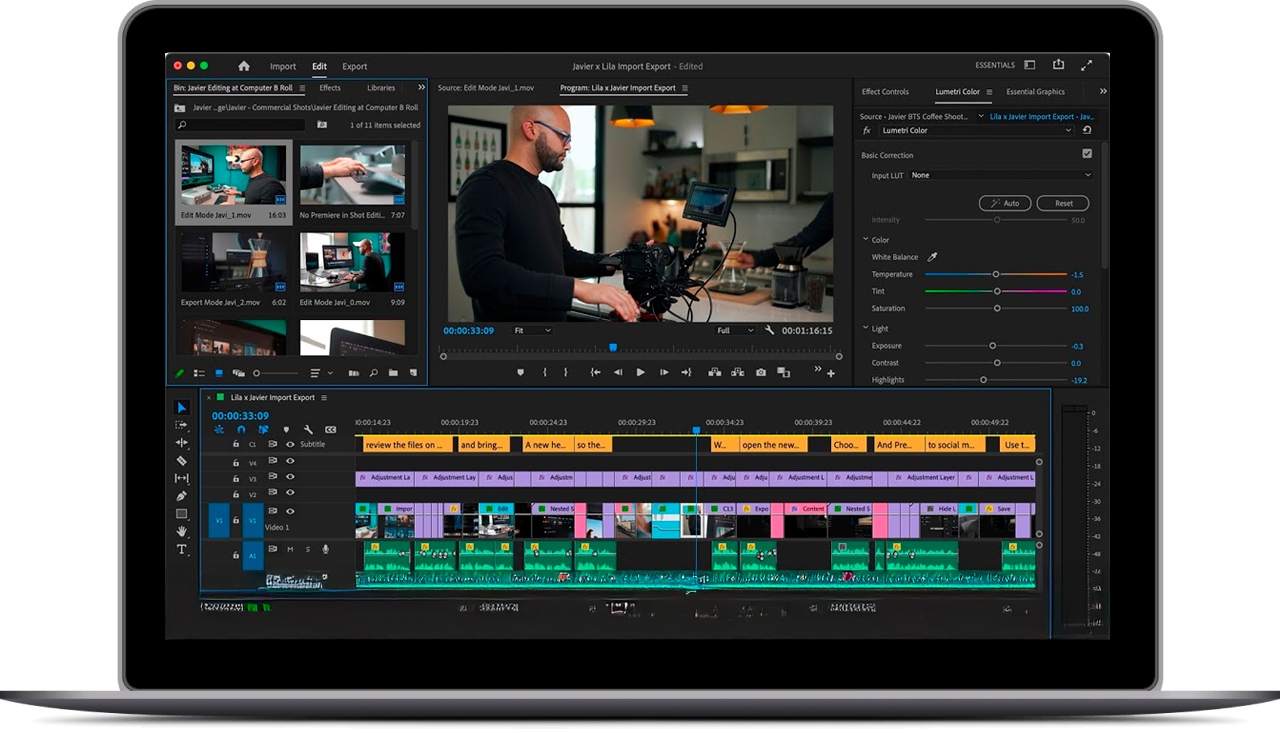 Produce, diseña y edita contenido profesional utilizando herramientas como la Inteligencia Artificial, Final Cut Pro, Photoshop, Illustrator, After Effects y más.